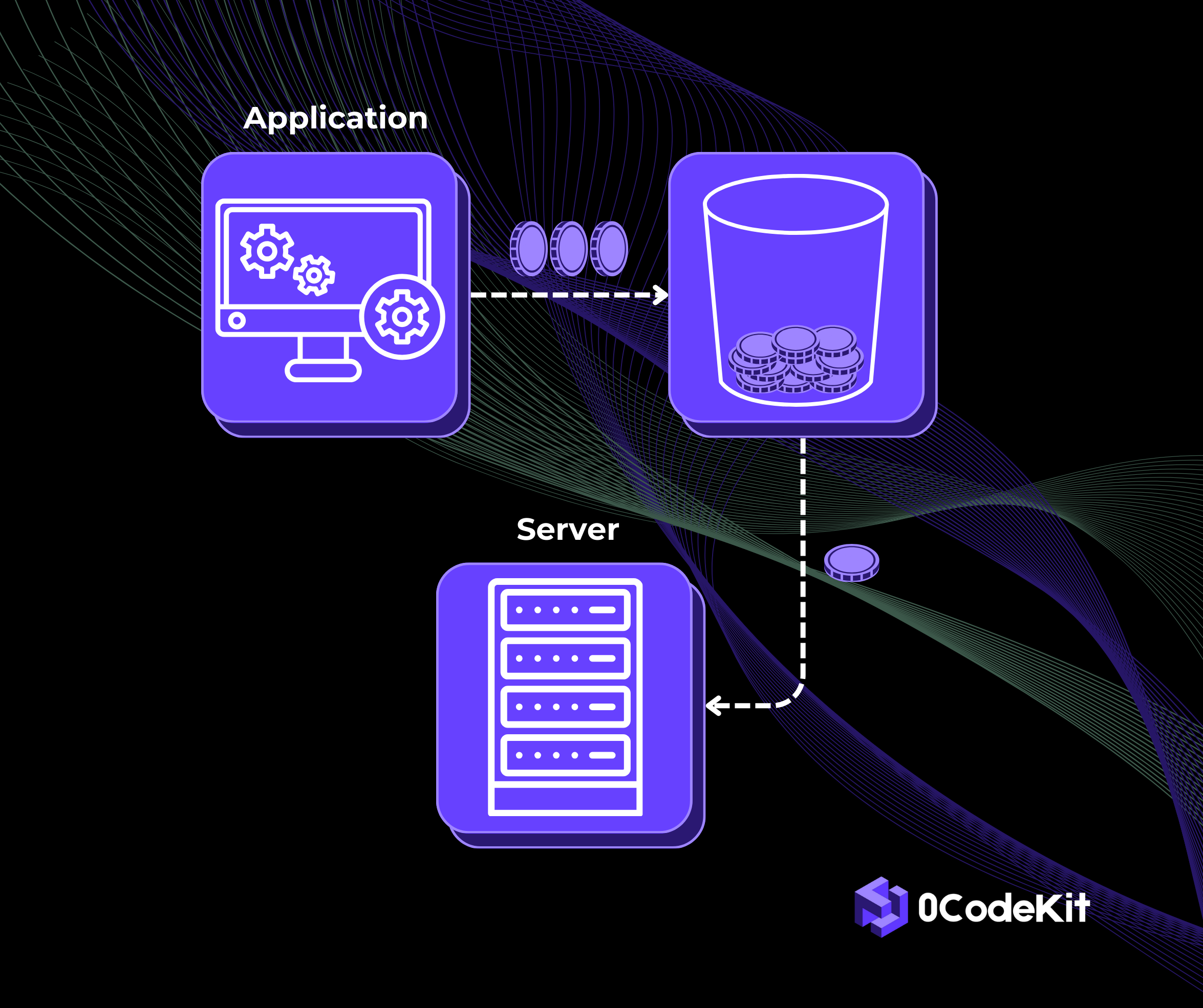 It is a bucket where an API request, when arriving, is completed to the fullest. If the bucket is full, the request either must wait or be dropped. However, over time, the requests trickle down at a steady pace. This helps to keep the process requests smooth and avoid waves that might overwhelm the system and slow down processing.